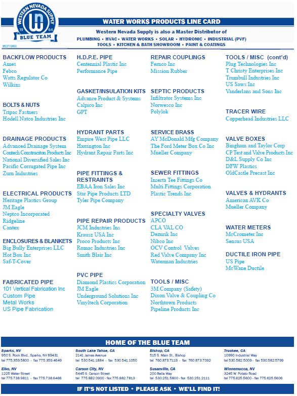 Unlike like other suppliers, Western Nevada Supply’s Estimating Department does all the work for you in determining the cost of materials for underground jobs. This free service allows you to save time and money on take-offs.